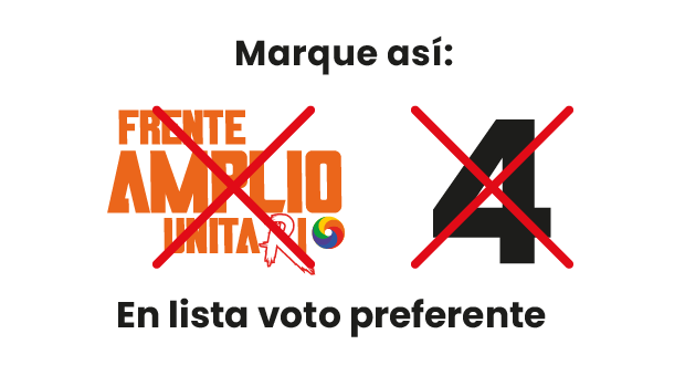 3.Marca con una X el logo del “FRENTE AMPLIO UNITARIO” y el NÚMERO 4, sin salirte del recuadro.